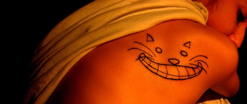 | Adoro as tatuagens com bichos cómicos e a ideia tanto de tatuar a branco como com tinta só visível com luz negra, como neste caso. |