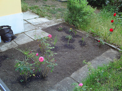 | Vou encher o quintalinho de Roseiras e Craveiros. No canto recortado vão ficar as Sardinheiras. Ali pelo meio andam também Jarros e Gladíolos e a minha mãe anda a namoras as Hortenses... |